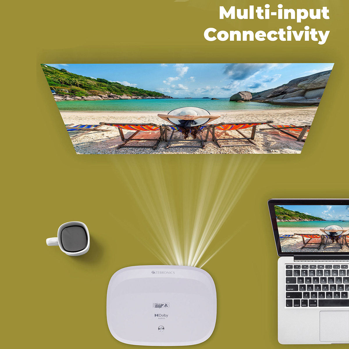 Use the ZEB-Pixaplay 23, which includes a built-in, powerful speaker to deliver a fantastic audio experience, to put on a non-stop movie marathon. The projector also comes with support for Dolby Audio.