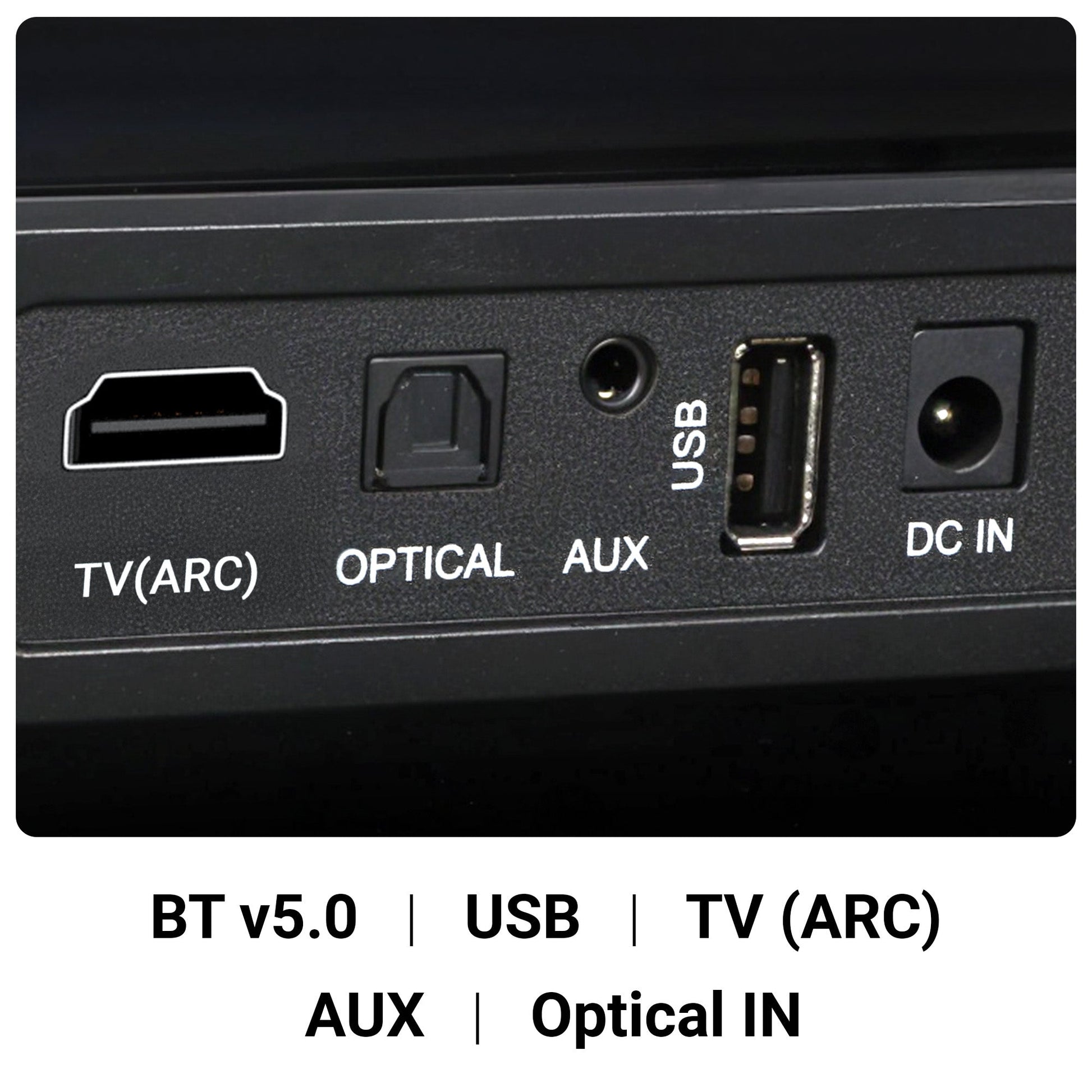BT v5.0 | HDMI (ARC) | Optical IN | USB | AUX