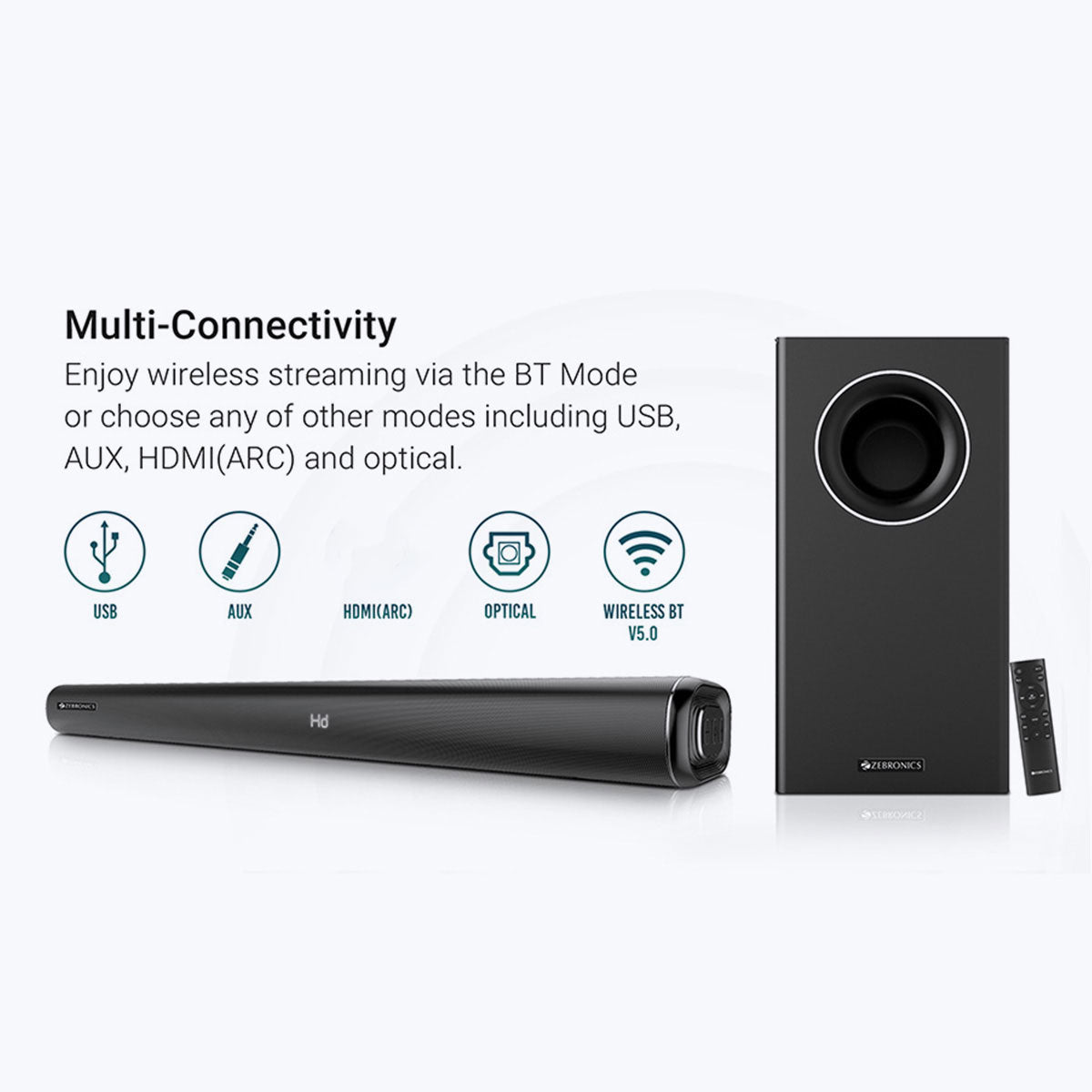Wireless BT/USB/AUX/Optical IN/HDMI(ARC)