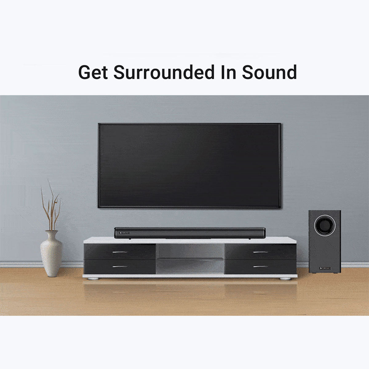 Watch and enjoy your favorite shows and movies in simulated surround sound with multi driver sound bar and subwoofer. Multi driver setup ensures sound flowing all around you and gives an immersive audio experience.