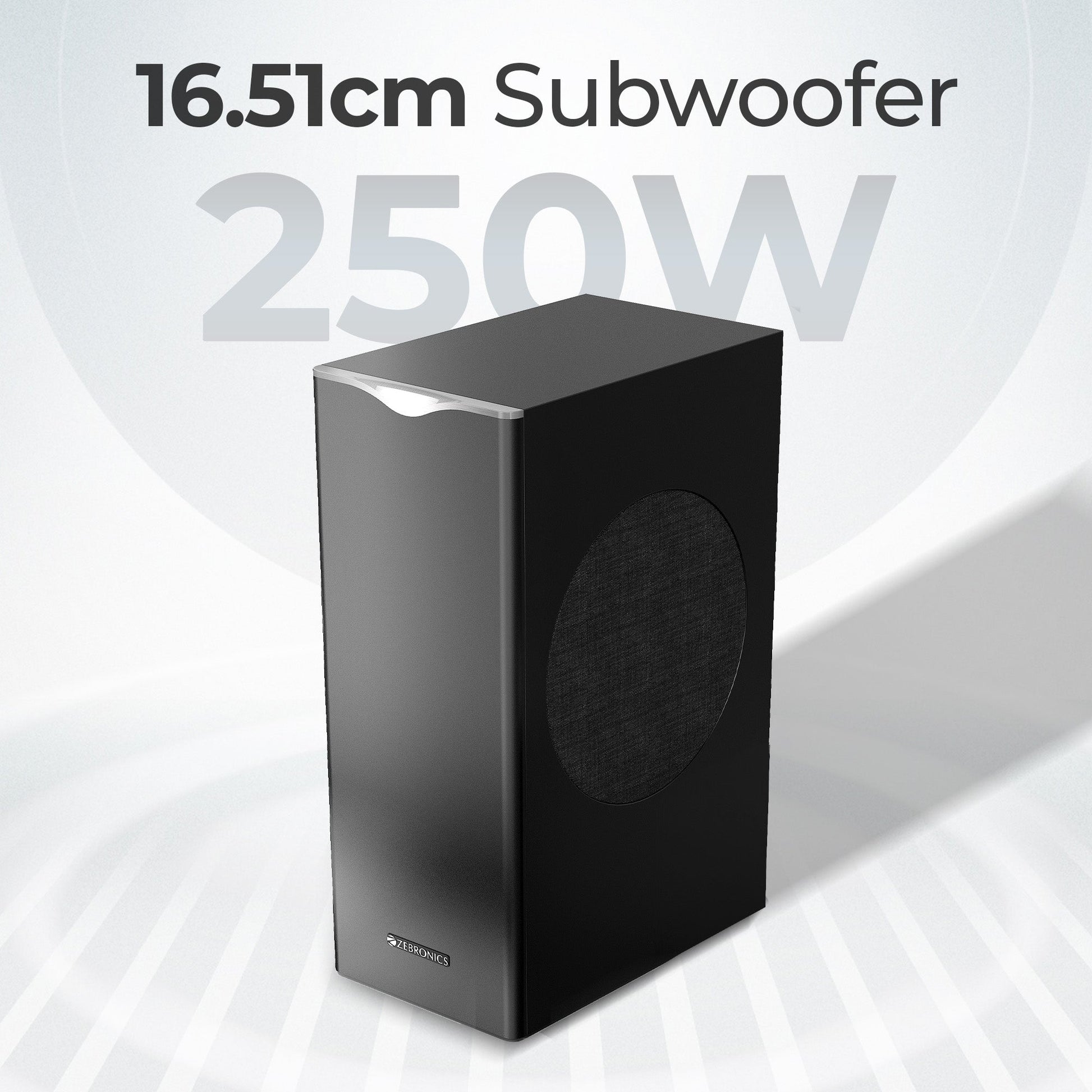 You can hear the depth of the music thanks to the robust dedicated subwoofer comes with the soundbar, which has a 16.51 cm driver for a booming experience. The subwoofer produces the bass, which enhances the low-end performance by highlighting the richness and rumble of the music. |