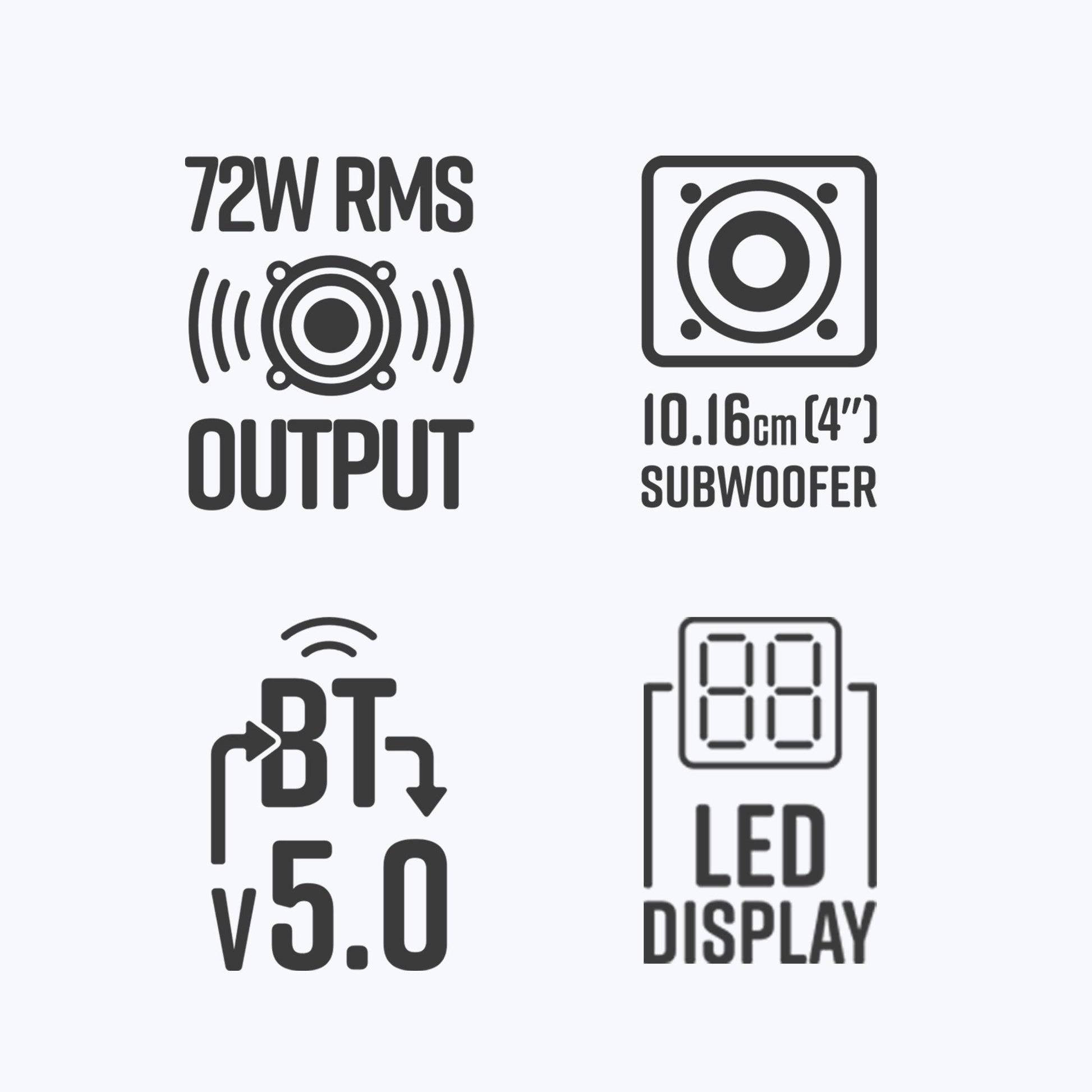 BT v5.0 | TV (ARC) | Coaxial IN | USB | AUX | |