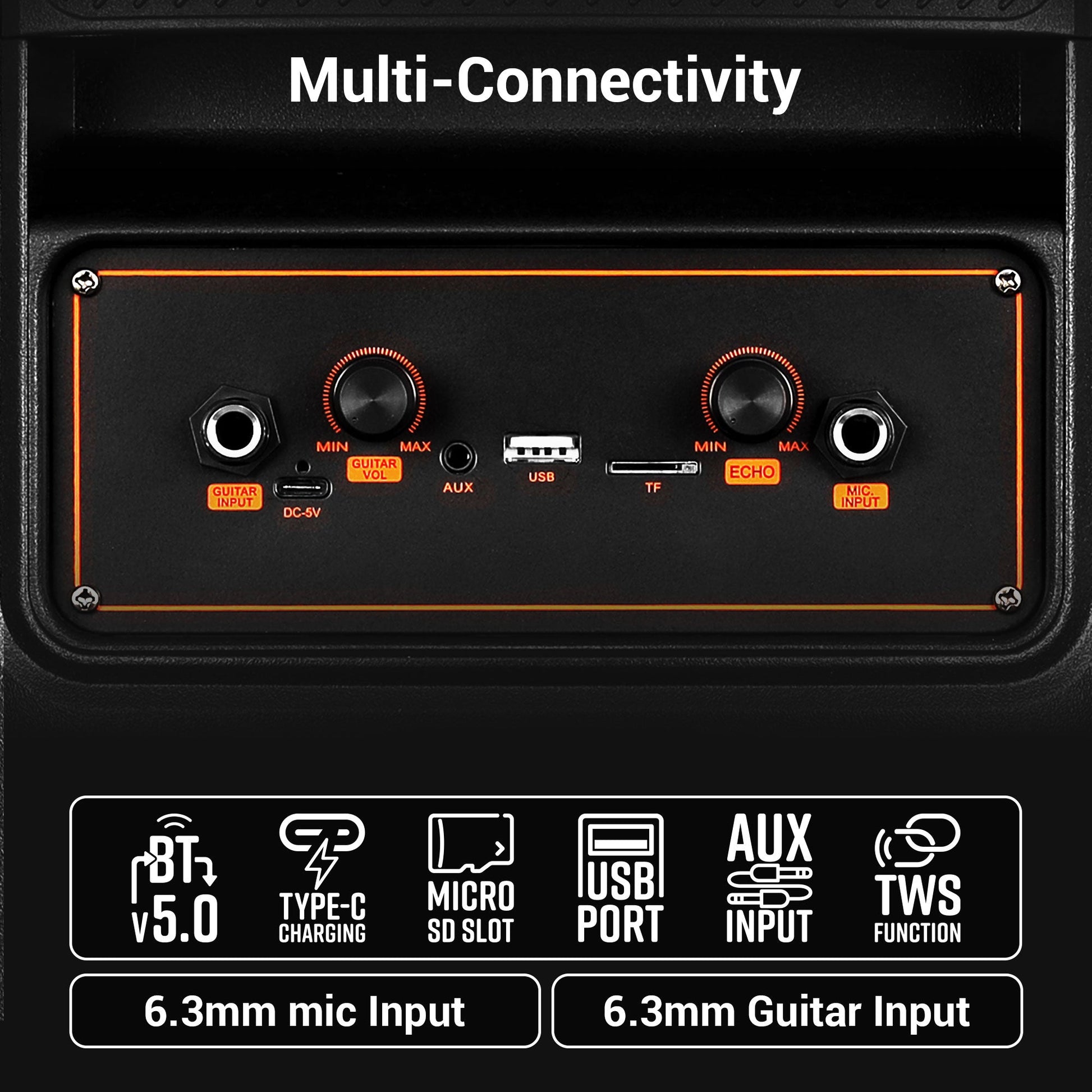 BT v5.0 | USB | mSD | AUX | MIC IN | GT IN |