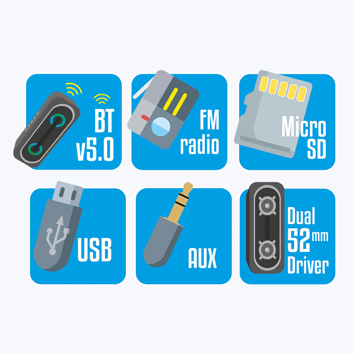 Start your music party anywhere as the portable speaker features dual 52mm drivers to deliver loud and clear music.