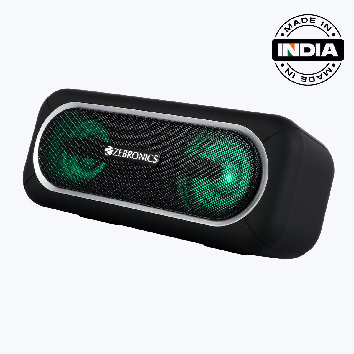 ZEB-Delight 20 is a portable speaker with a fusion of RGB light and powerful sound in a compact form factor. It features dual 52mm drivers to deliver loud and clear sound. The portable speaker has call function including controls for volume/media and comes with multi-connectivity options like wireless BT/ AUX/mSD/ USB and comes with a built-in FM Radio.