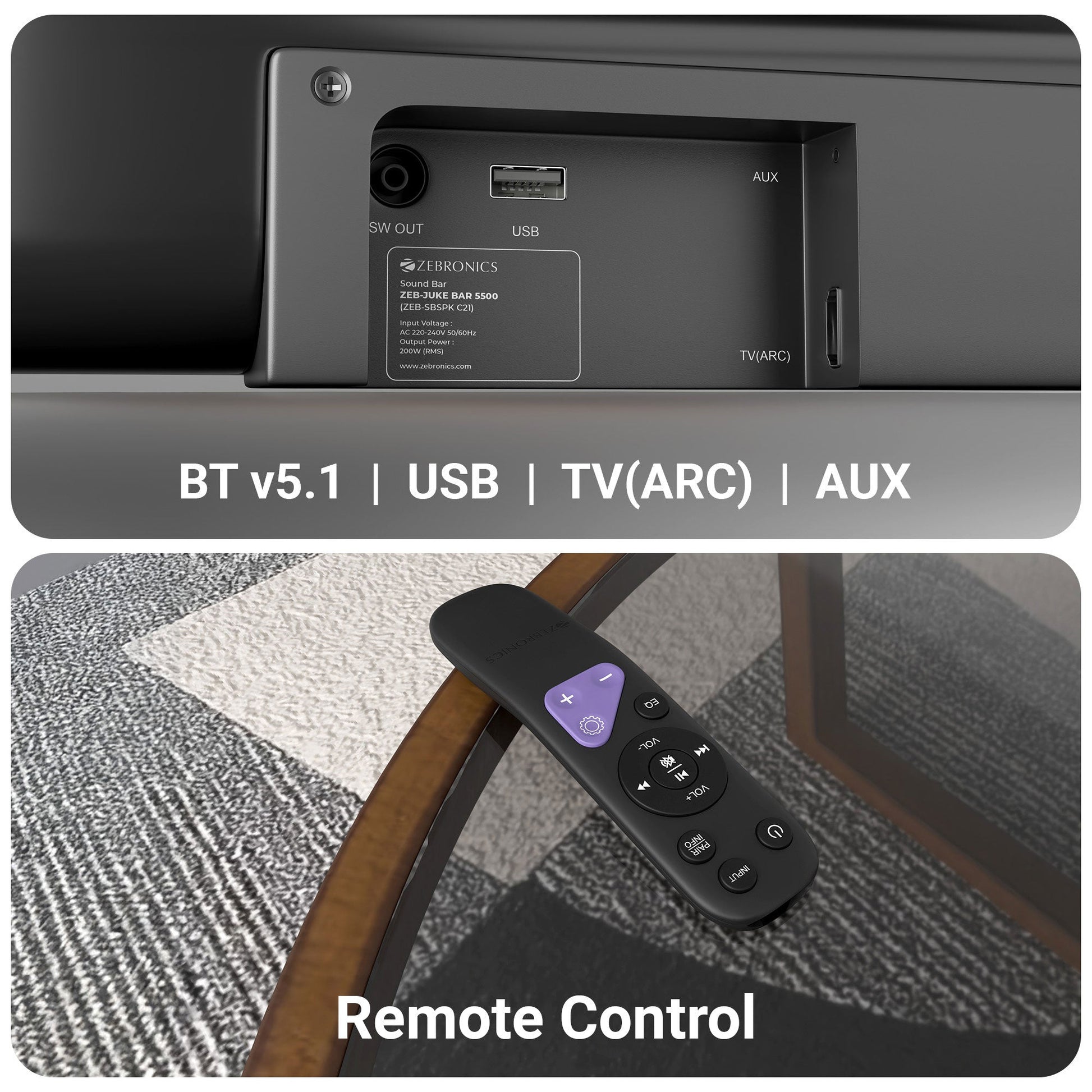 BT v5.1 | HDMI (ARC) | USB | AUX